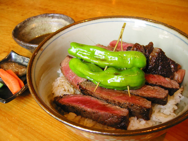 The Steak Don ($20) has a bed of juicy prime rib eye, cooked with soy sauce and butter that is on top of hot, steaming rice.